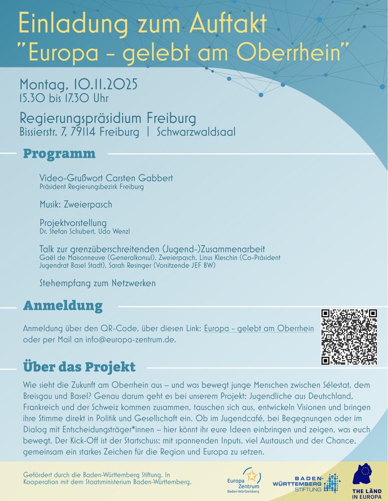 Die Veranstaltung findet im Rahmen des Projekts "Europa - gelebt am Oberrhein" statt. Das Projekt wird von der Baden-Württemberg-Stiftung gefördert.